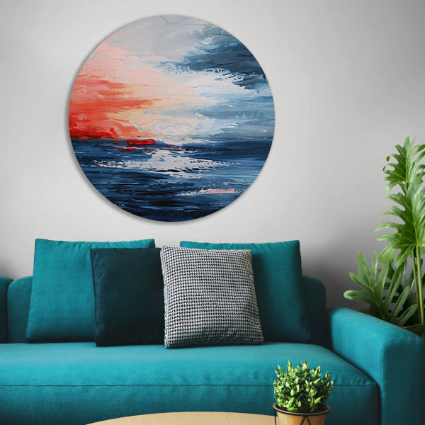 Abstracte zonsondergang boven kalme zee aluminium muurcirkel
