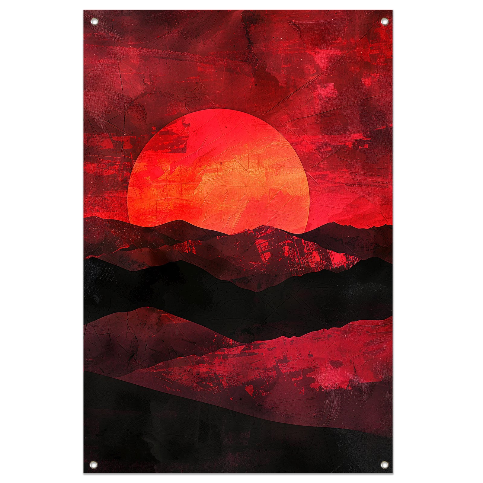 Abstracte zonsondergang met kleurrijk landschap tuinposter