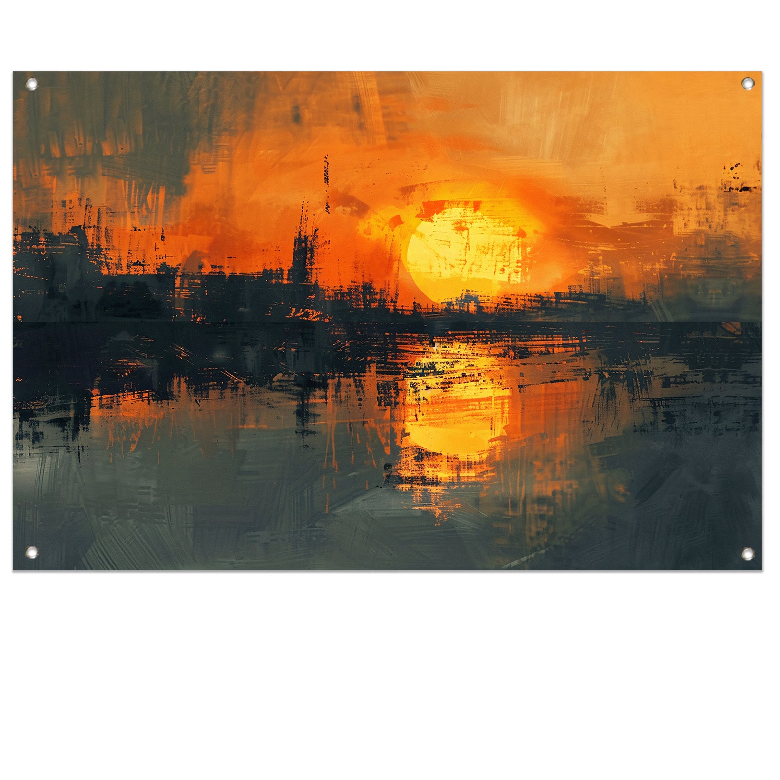 Abstracte zonsondergang met stadse reflectie tuinposter