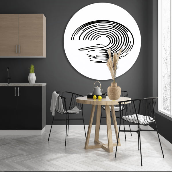 Abstracte Zwart-Witte Dynamische Lijnkunst aluminium muurcirkel