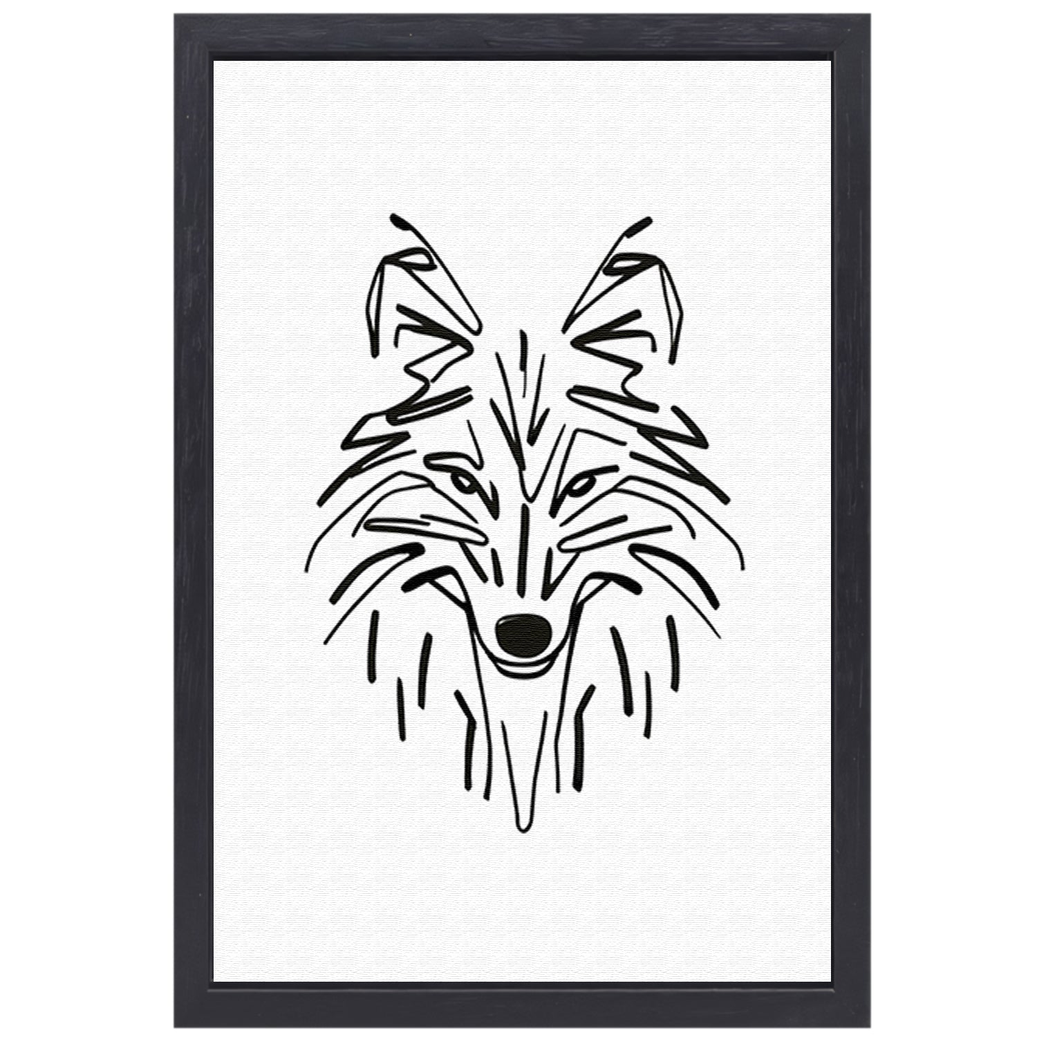 Abstracte Zwart-Witte Vos Lijntekening canvas met baklijst