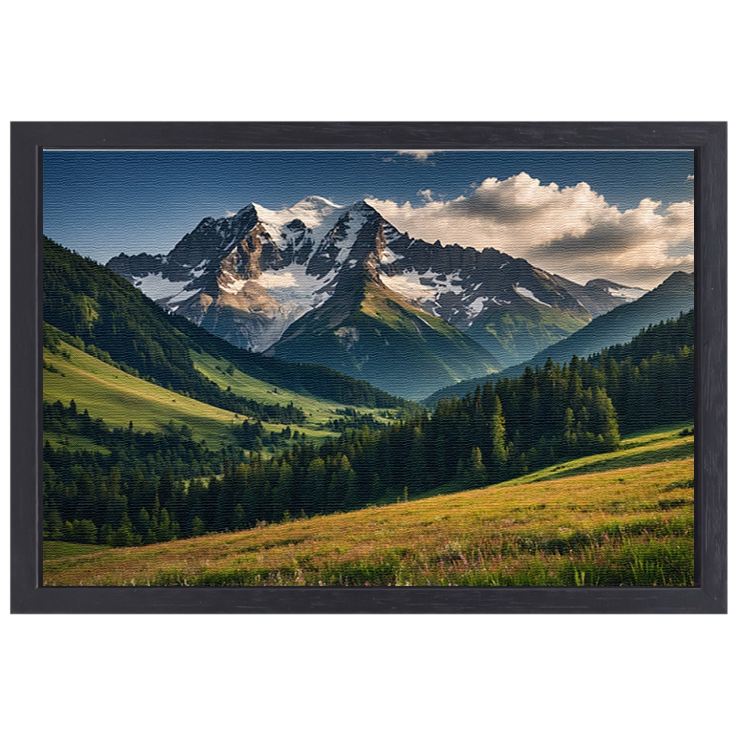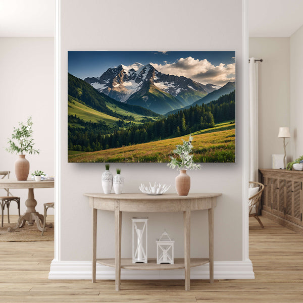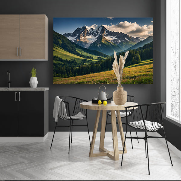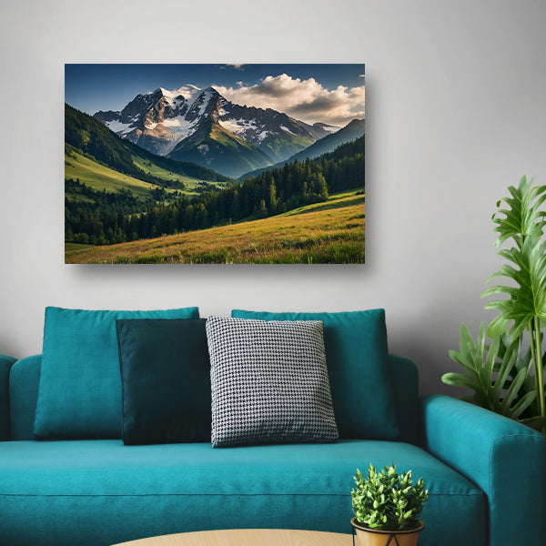 Adembenemend berglandschap met groene weiden canvas met baklijst