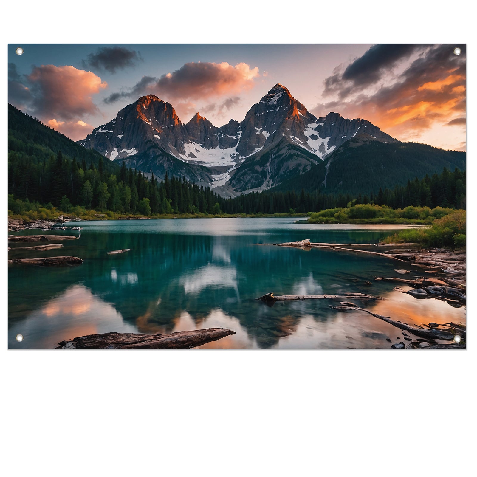 Adembenemend Berglandschap met Spiegelend Meer tuinposter