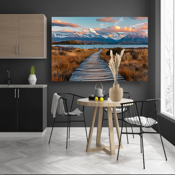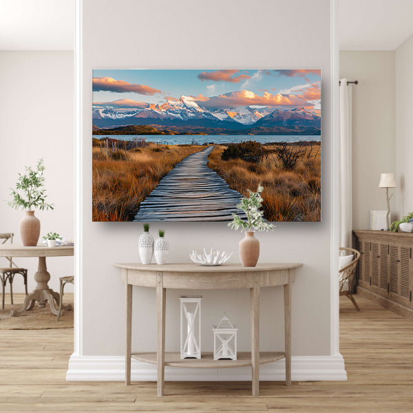 Adembenemend Patagonia landschap met bergen en meer canvas met baklijst