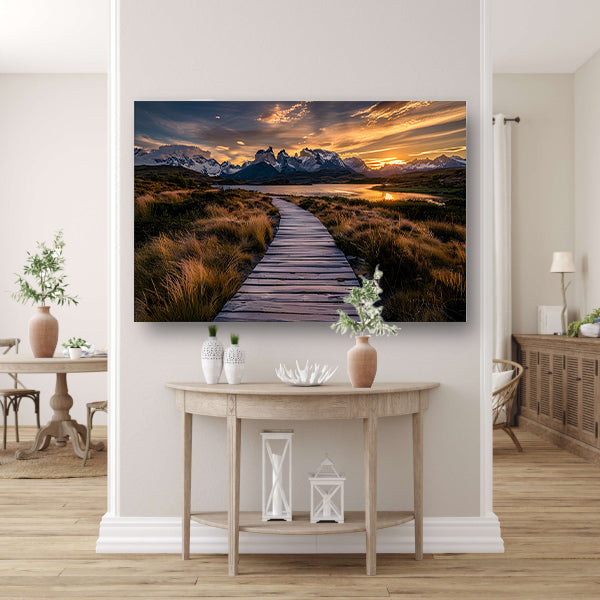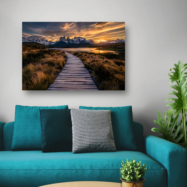 Adembenemende zonsondergang over Patagonië landschap canvas met baklijst