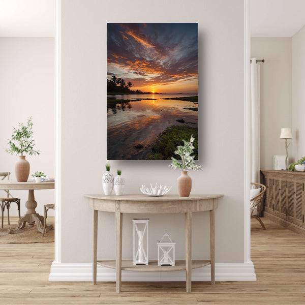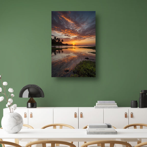 Adembenemende zonsondergang weerspiegeld in water acrylglas