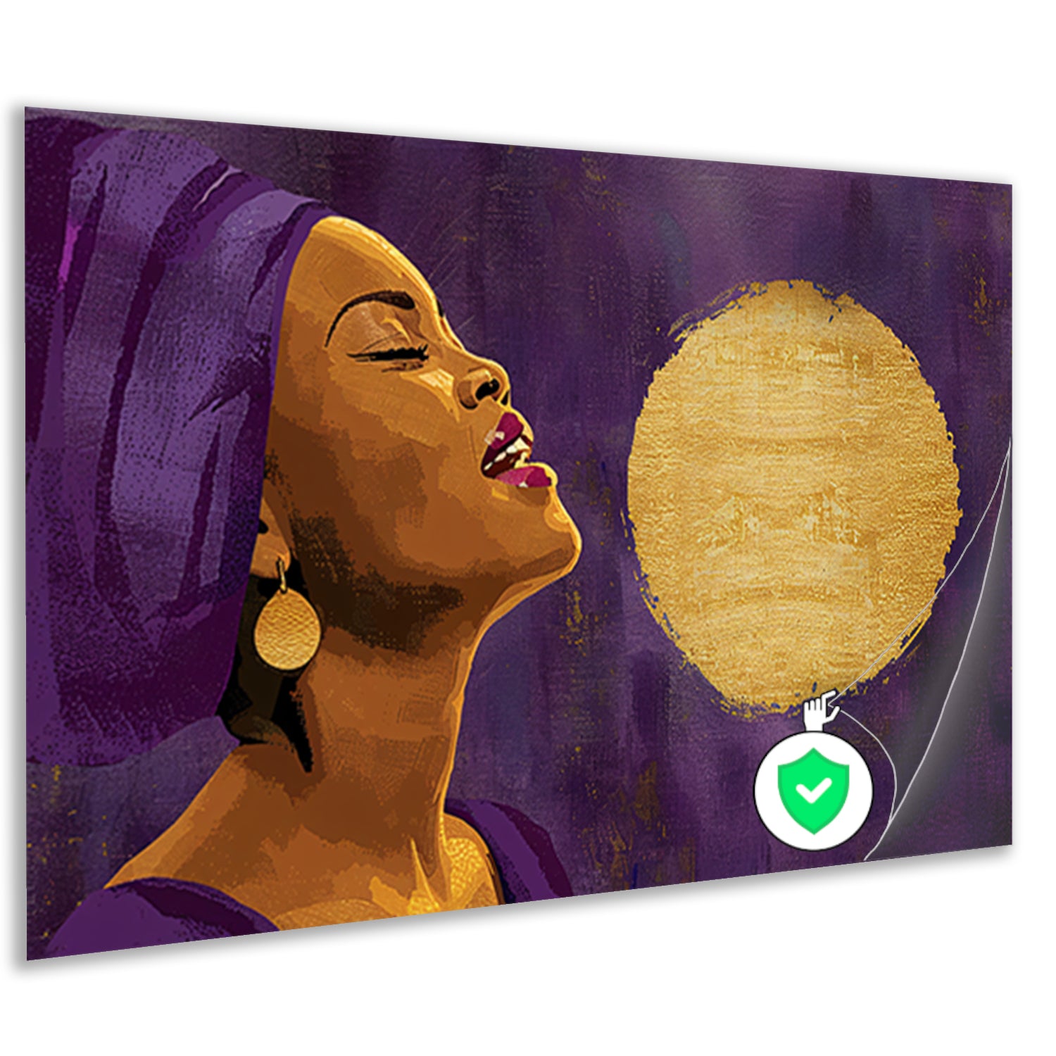 Afrikaanse vrouw met paarse doek en gouden maan poster