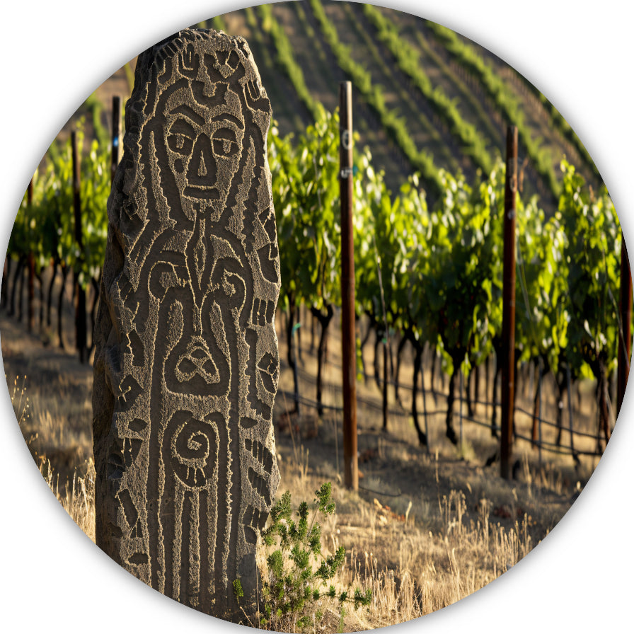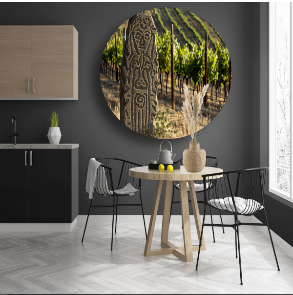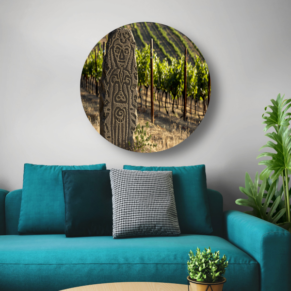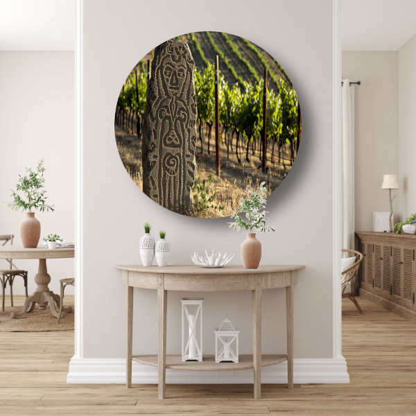 Antieke Sculptuur Omringd door Wijngaard Groen aluminium muurcirkel