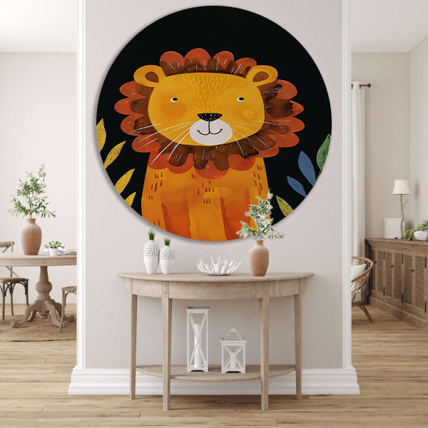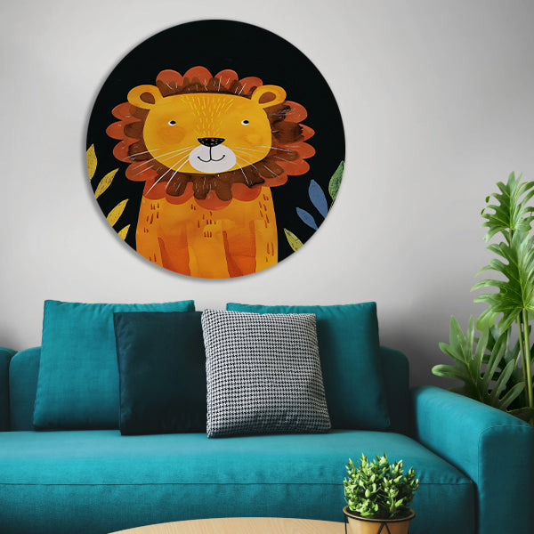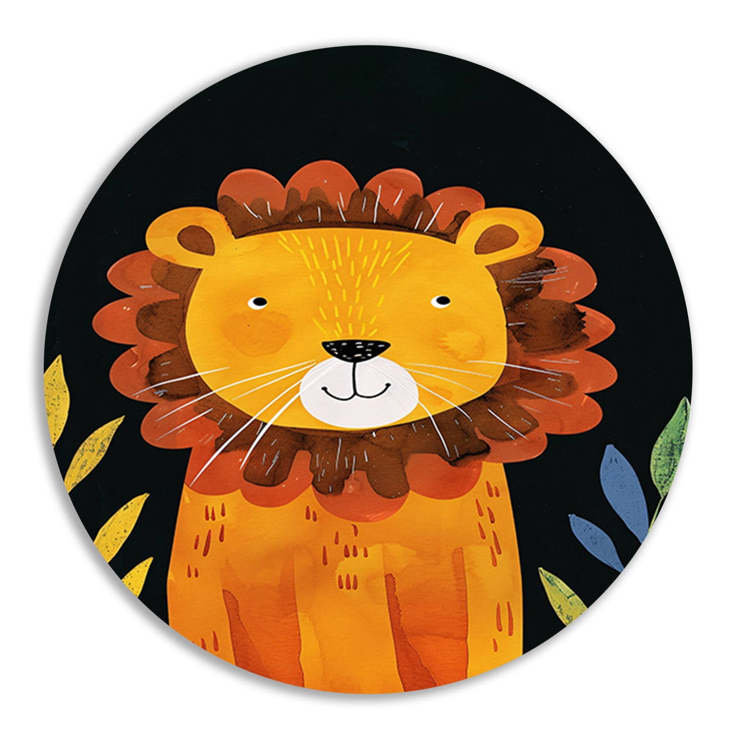 Kies voor de Aquarel Illustratie Vrolijke Leeuw aluminium muurcirkel en geef je interieur een speels en stijlvol accent!