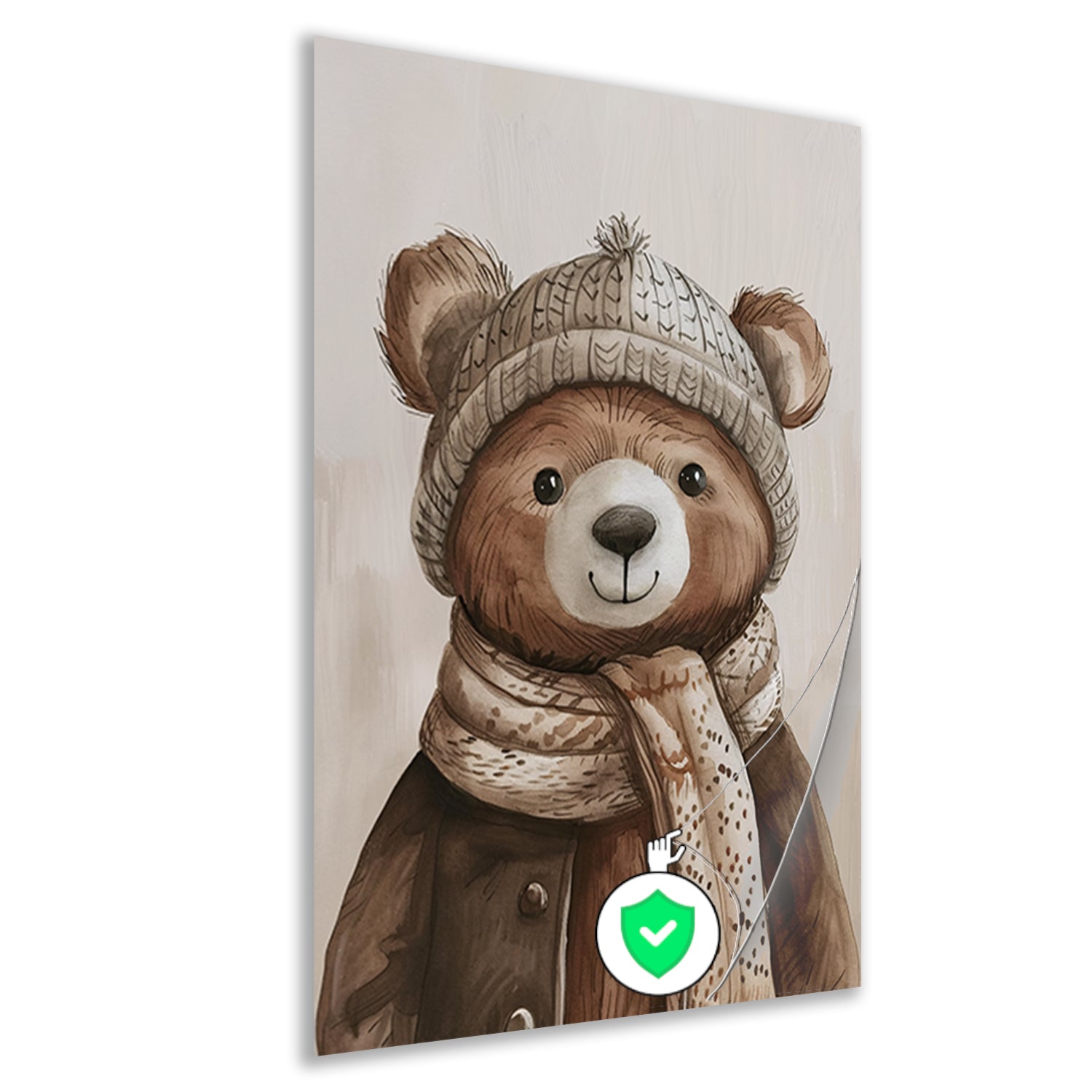 Aquarel van beer met sjaal poster
