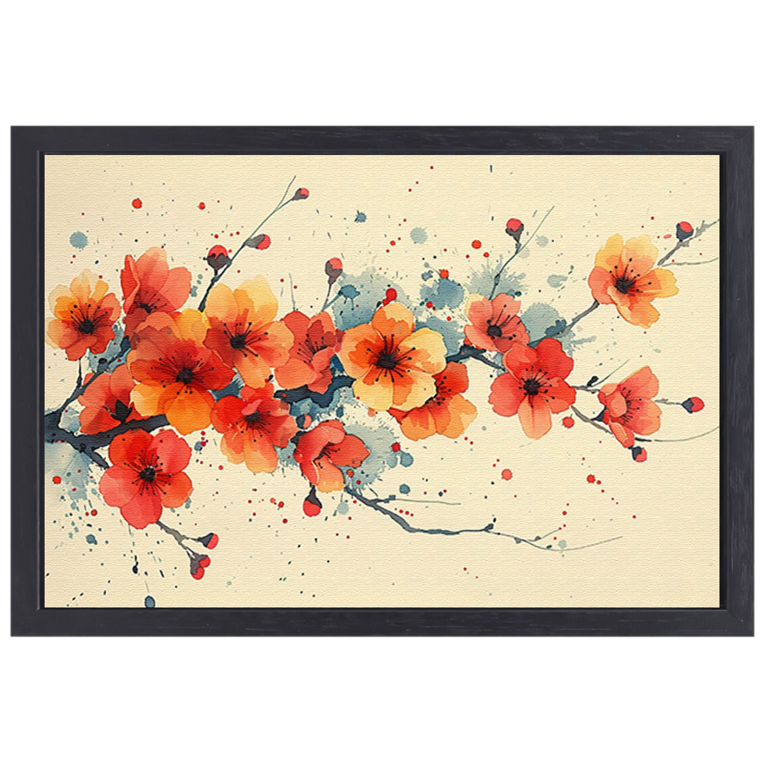Aquarelbloemen in rood en oranje canvas met baklijst
