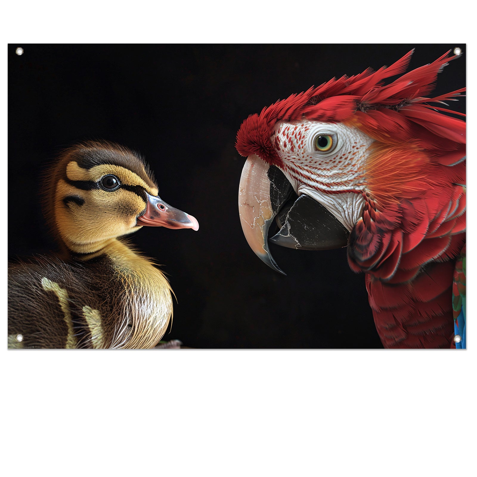 Onze tuinposters zijn UV- en waterbestendig, waardoor ze bestand zijn tegen zon en regen en hun kleuren langdurig mooi blijven. Alle tuinposters van De Muurdecoratie zijn voorzien van ringen in de hoeken, zodat je ze eenvoudig kunt ophangen. Let op: onze tuinposters worden niet met ophangsysteem geleverd.
