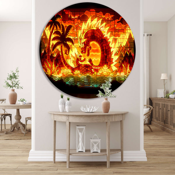 Voeg dit prachtige drakenraam toe aan je interieur en geniet van de unieke combinatie van Art Nouveau en moderne materialen. Laat je inspireren door de sierlijke lijnen en mysterieuze sfeer van dit kunstwerk en geef je interieur een stijlvolle touch met deze Art Nouveau muurcirkel van forex.