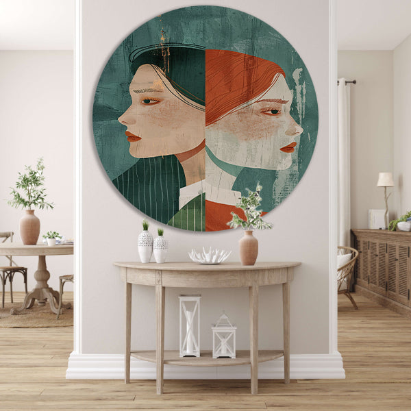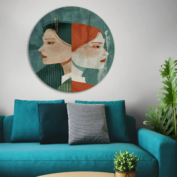 Artistieke moderne portretten van een stel aluminium muurcirkel
