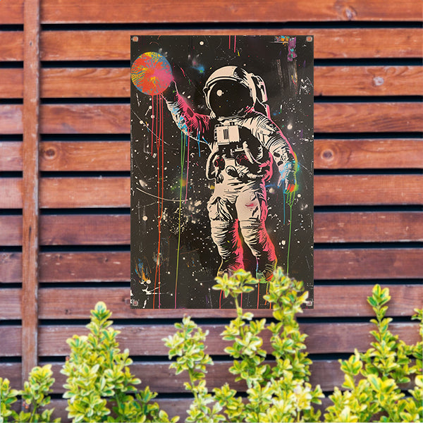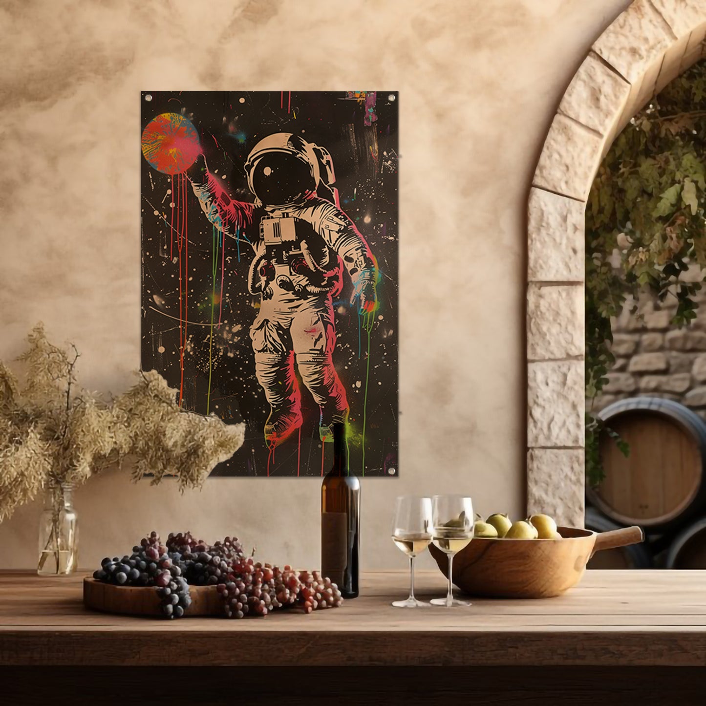Astronaut Ontmoet Levendige Kleuren in de Ruimte tuinposter