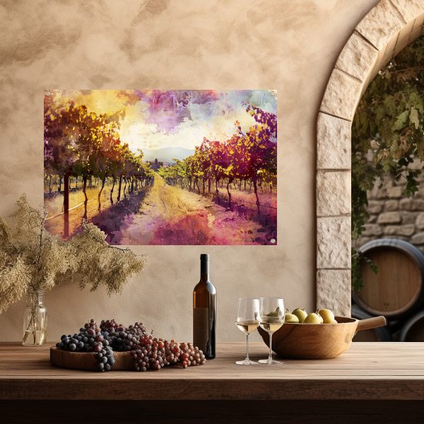 Avondgloed over kleurrijke wijngaard bergen tuinposter