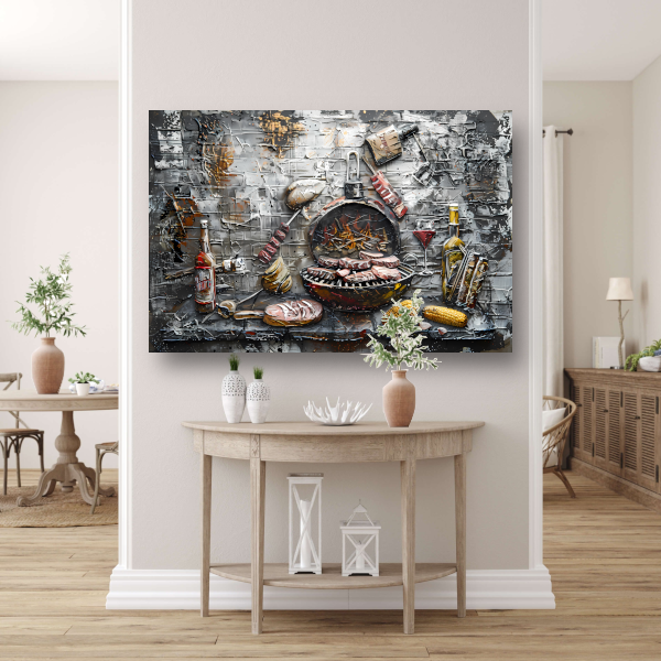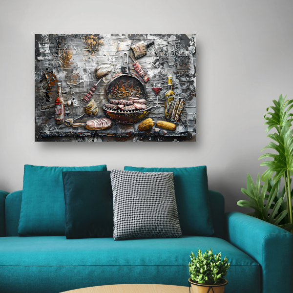 Barbecue in de tuin canvas met baklijst