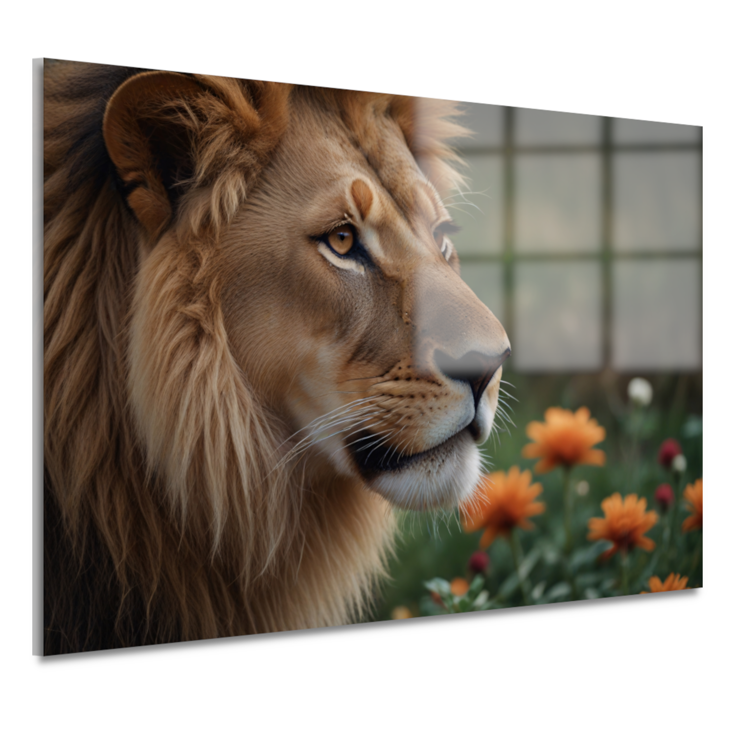 Bedachtzame Leeuw in een Veld van Bloemen acrylglas