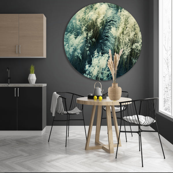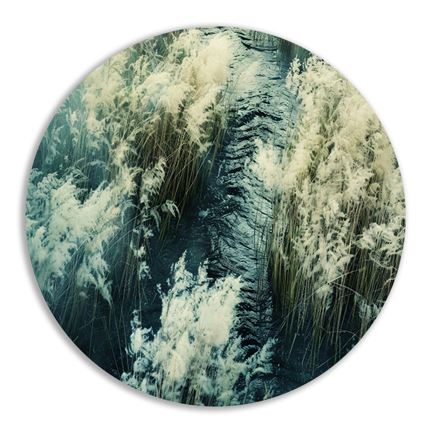 Beek door graslanden met rustgevend water aluminium muurcirkel