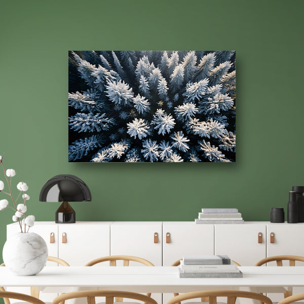 Besneeuwde bomen in winterse boslandschap canvas met baklijst