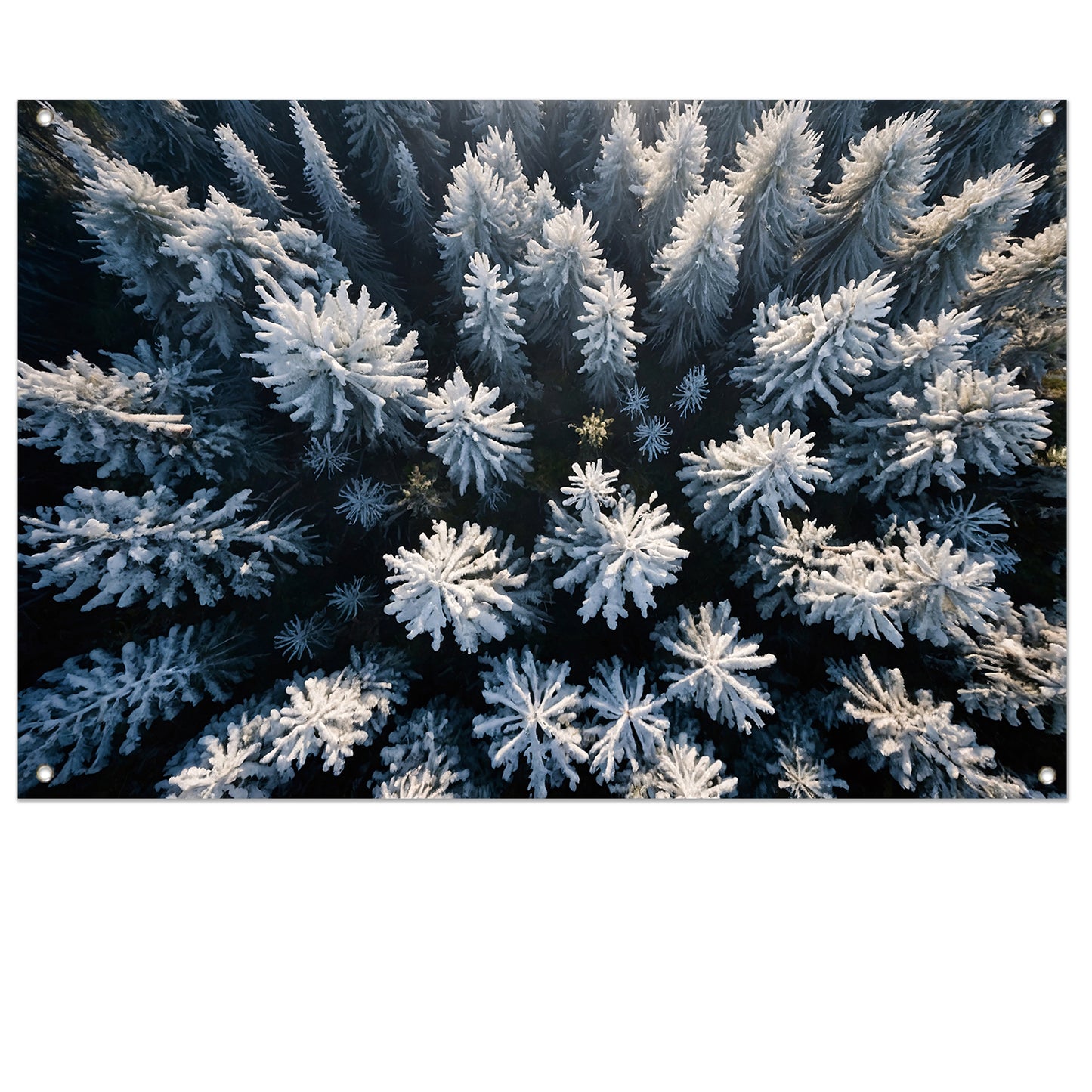 Besneeuwde bomen in winterse boslandschap tuinposter