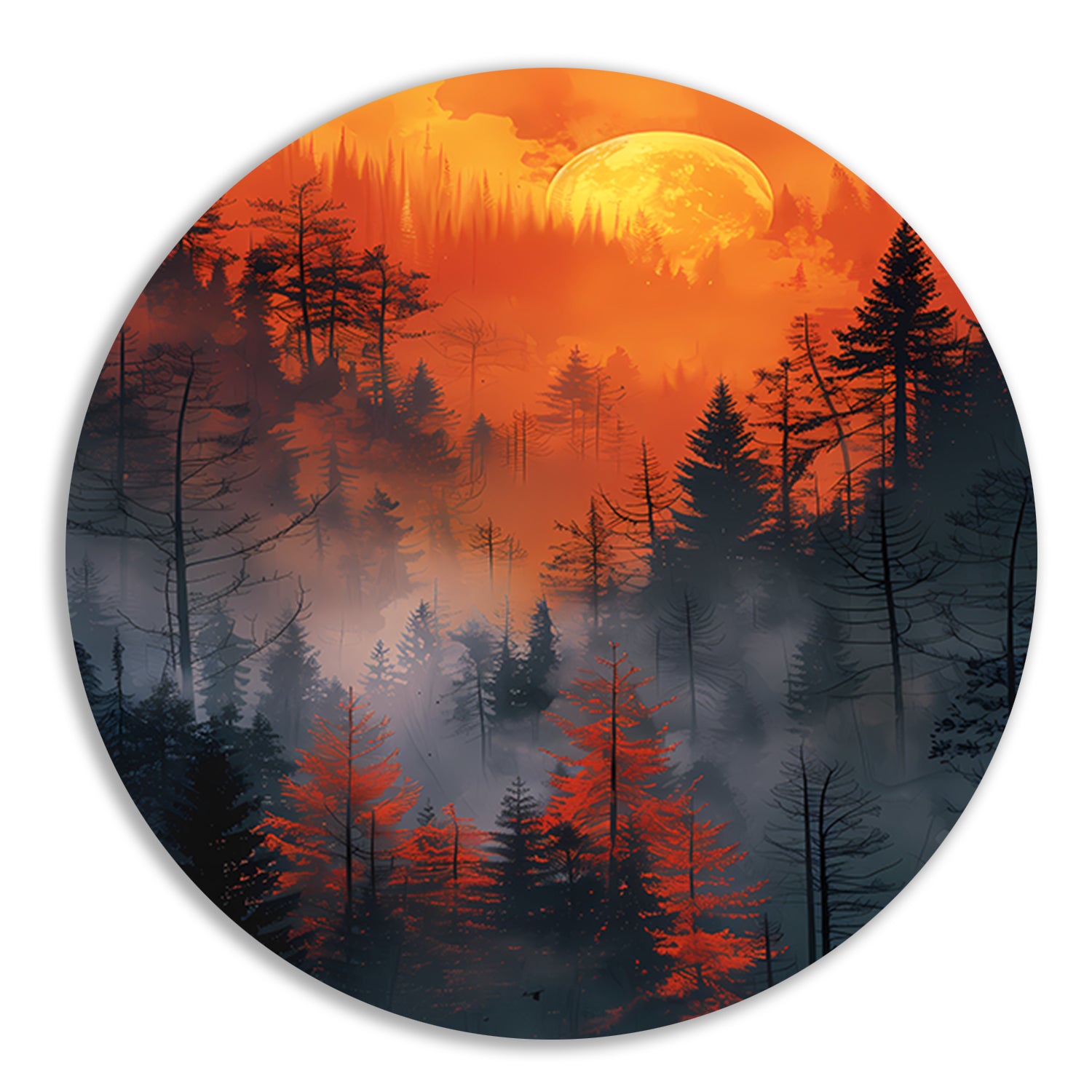 Betoverend Bos Onder Bloedrode Maan aluminium muurcirkel