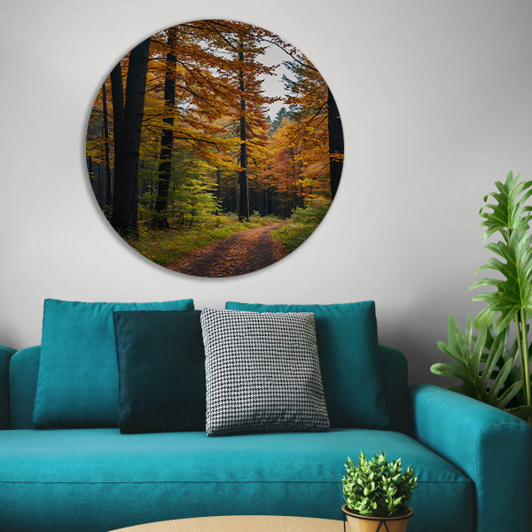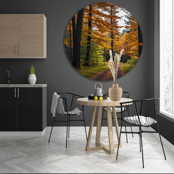 Betoverend herfstbos met kleurrijke bladeren forex muurcirkel