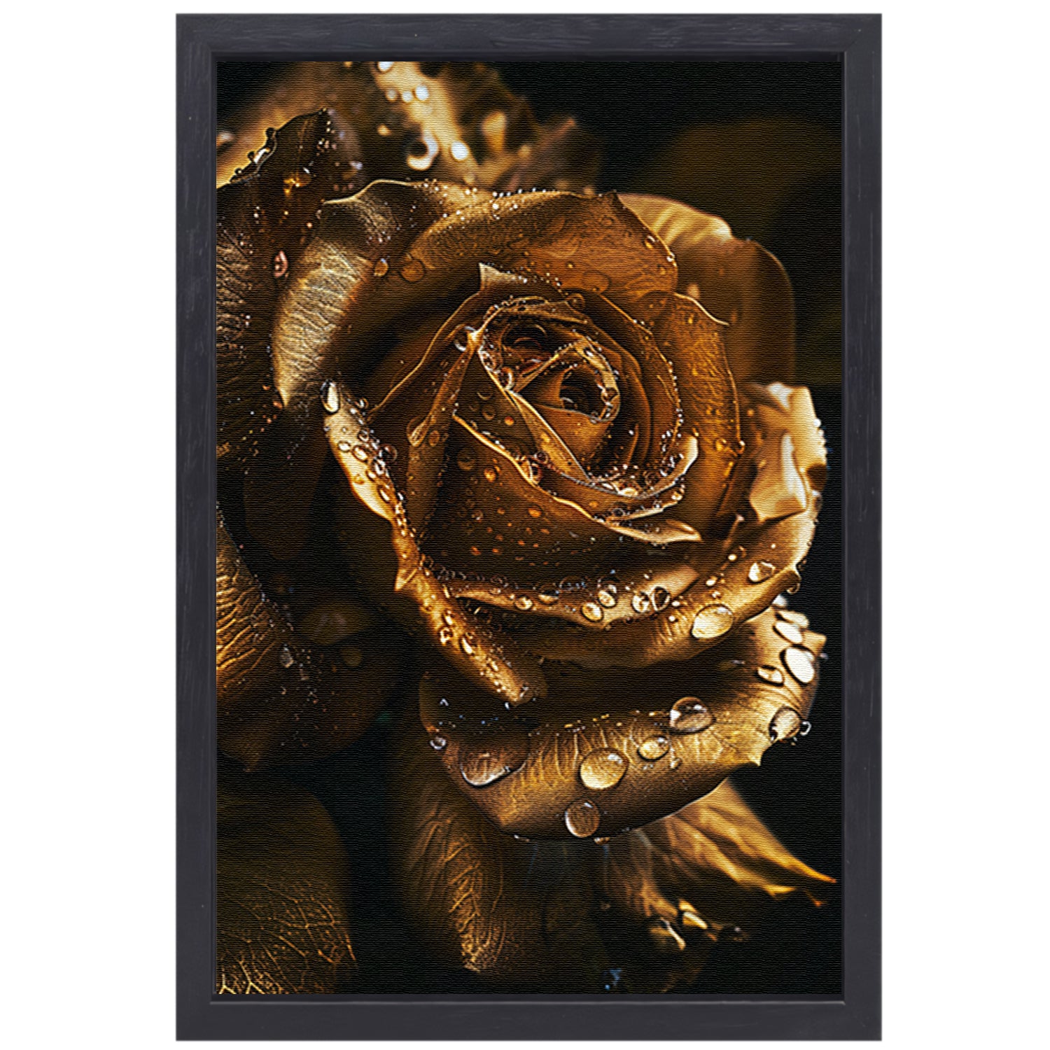 Betoverende gouden roos met ochtenddauw canvas met baklijst
