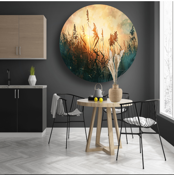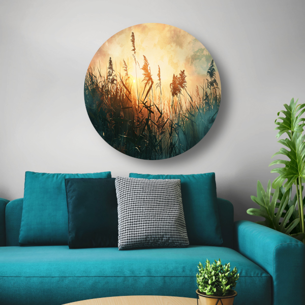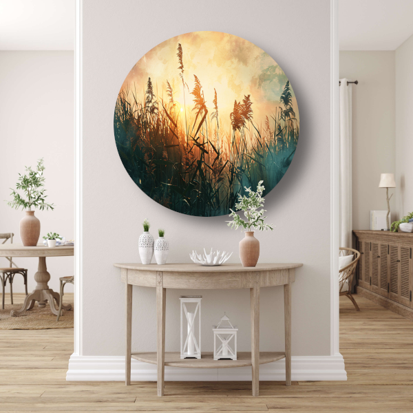 Betoverende Ochtendzon Tussen Het Riet aluminium muurcirkel