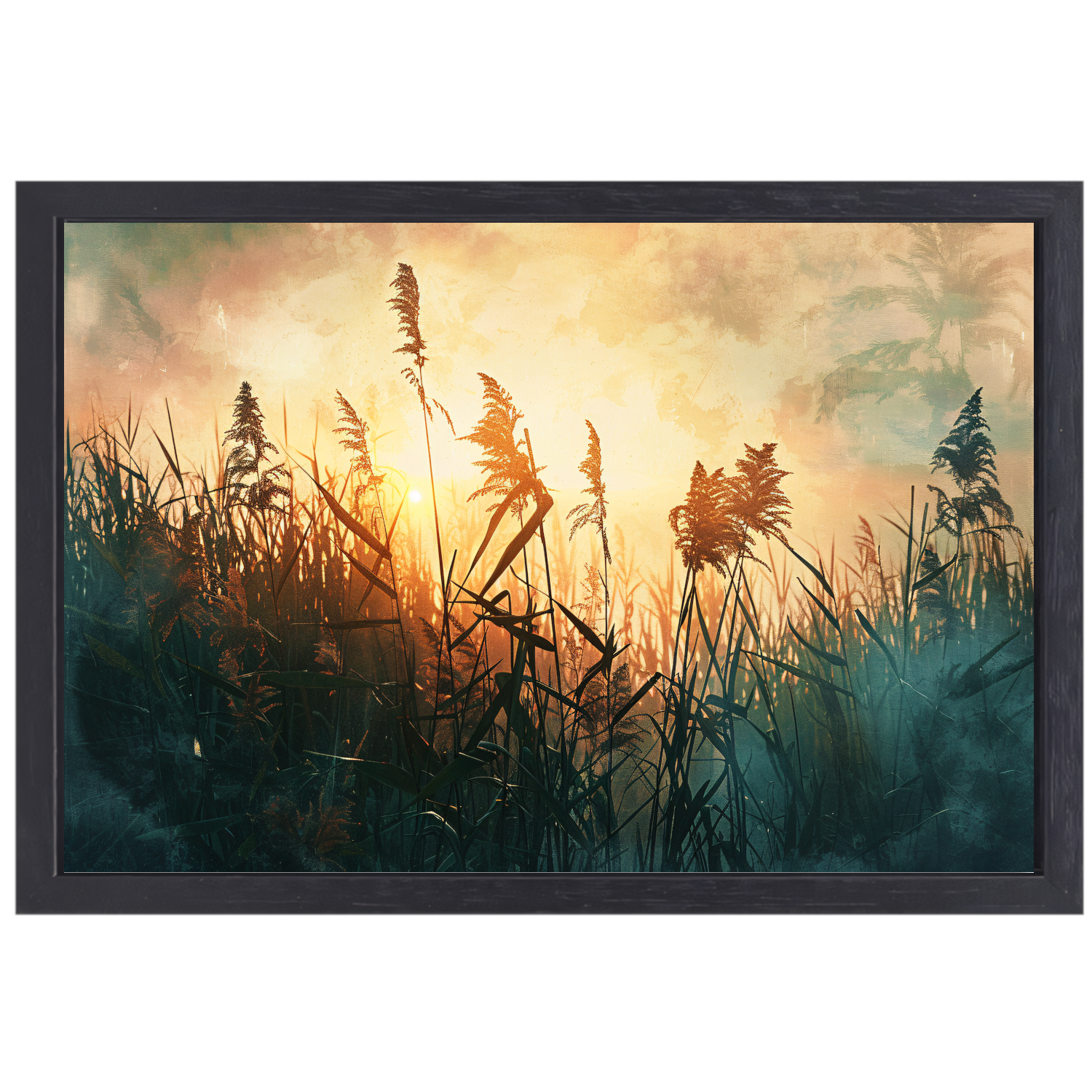 Betoverende Ochtendzon Tussen Het Riet canvas met baklijst
