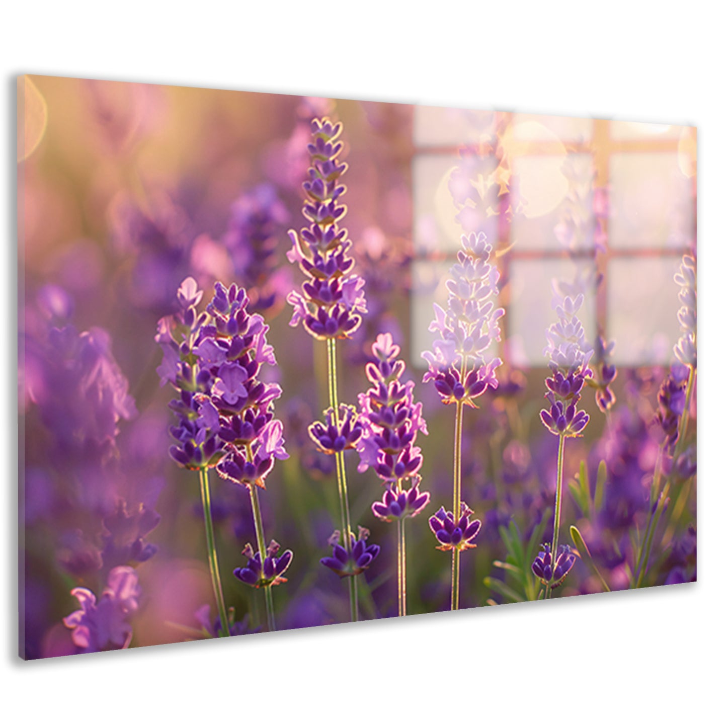 Betoverende zonsondergang over een lavendelveld acrylglas