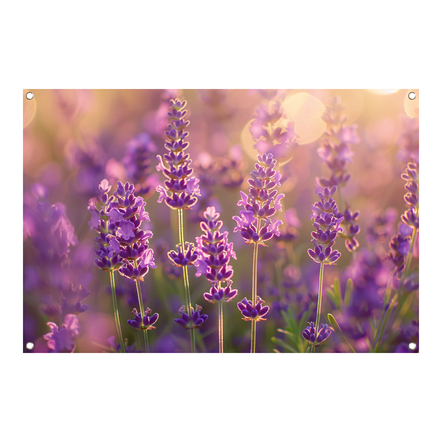 Betoverende zonsondergang over een lavendelveld tuinposter