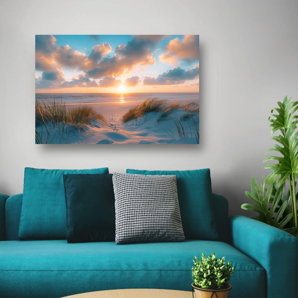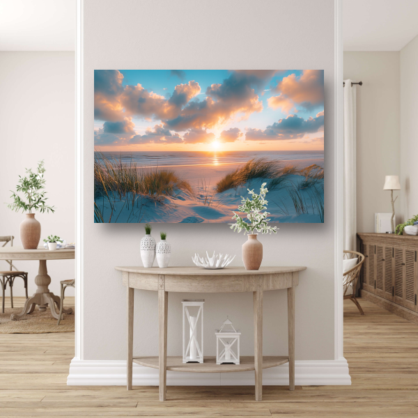 Betoverende zonsopgang op een rustig zandstrand acrylglas