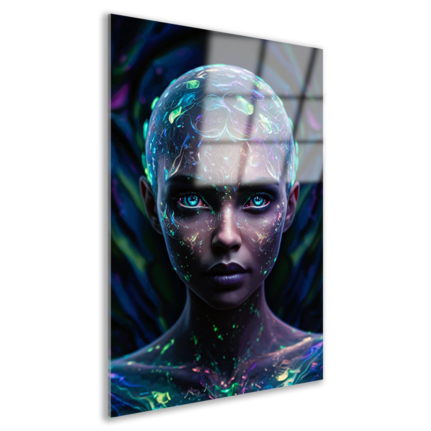 Bioluminiscerende vrouw met futuristische uitstraling acrylglas