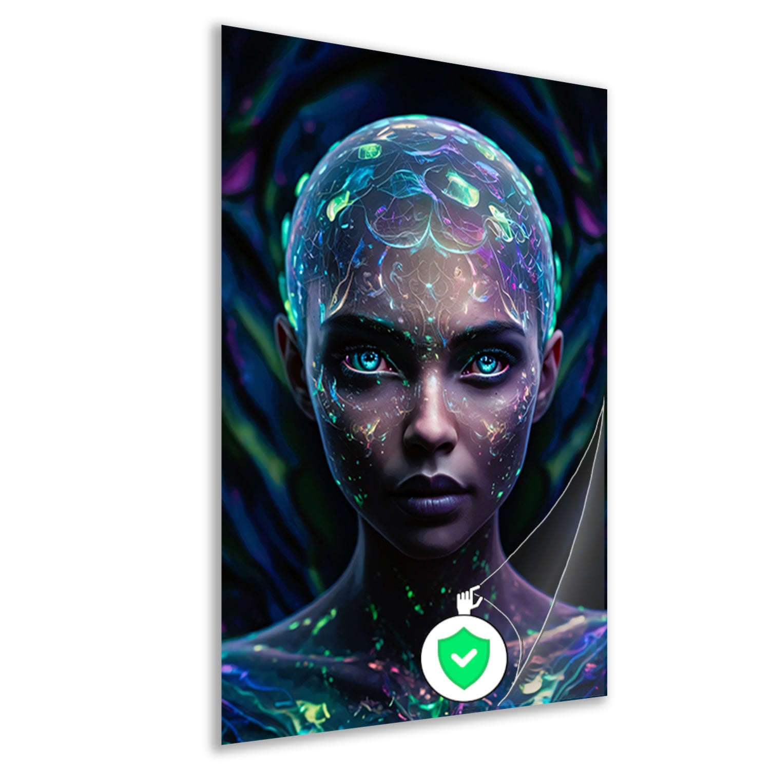 Bioluminiscerende vrouw met futuristische uitstraling poster