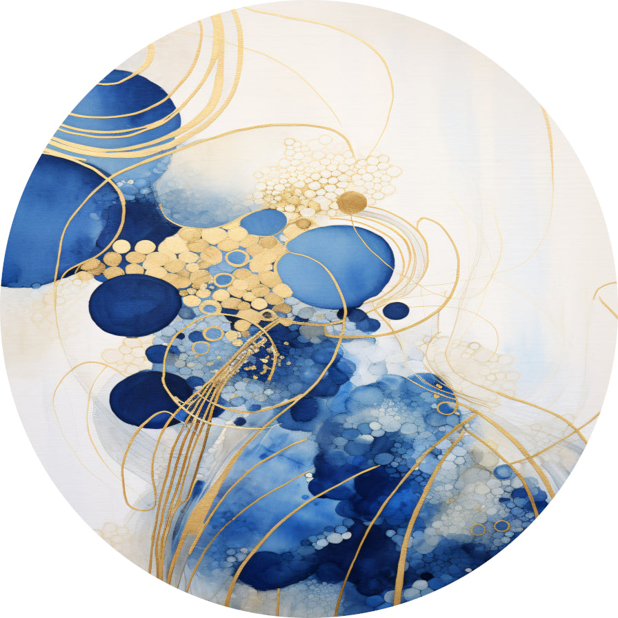 Blauwe Diepten met Gouden Accenten aluminium muurcirkel