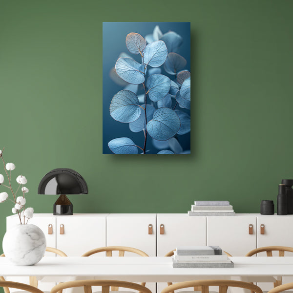 Blauwe eucalyptusbladeren in minimalistisch realisme acrylglas
