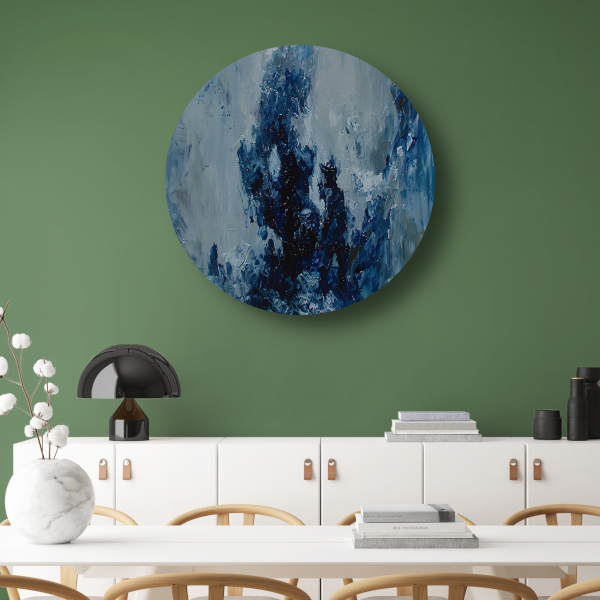 Blauwe lijnen compositie aluminium muurcirkel