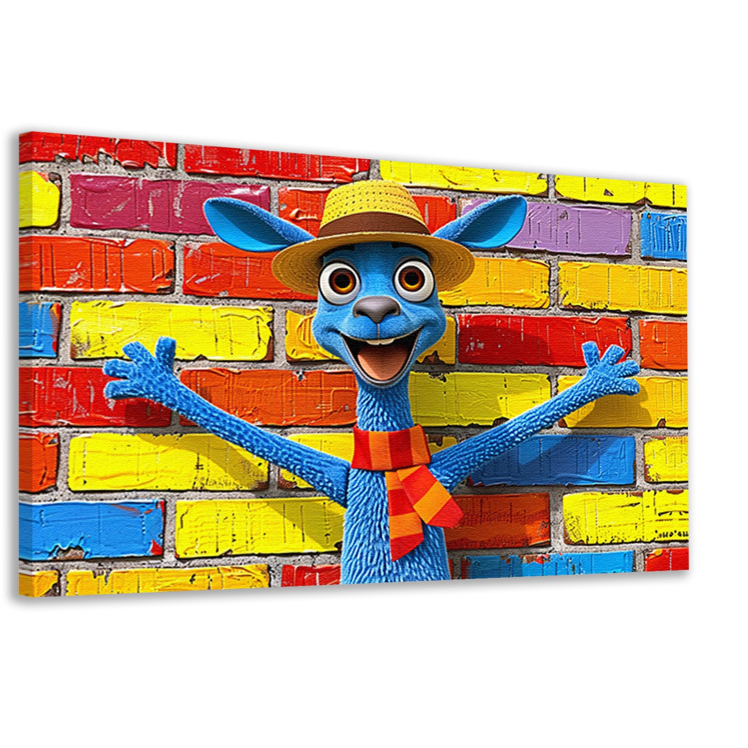 Blije blauwe kangoeroe voor kleurrijke muur canvas