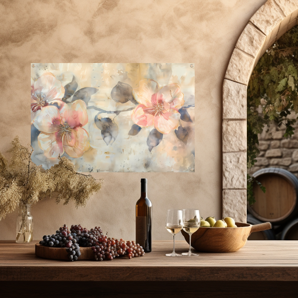 Bloeiende abstractie in aquarel met zachte tinten tuinposter