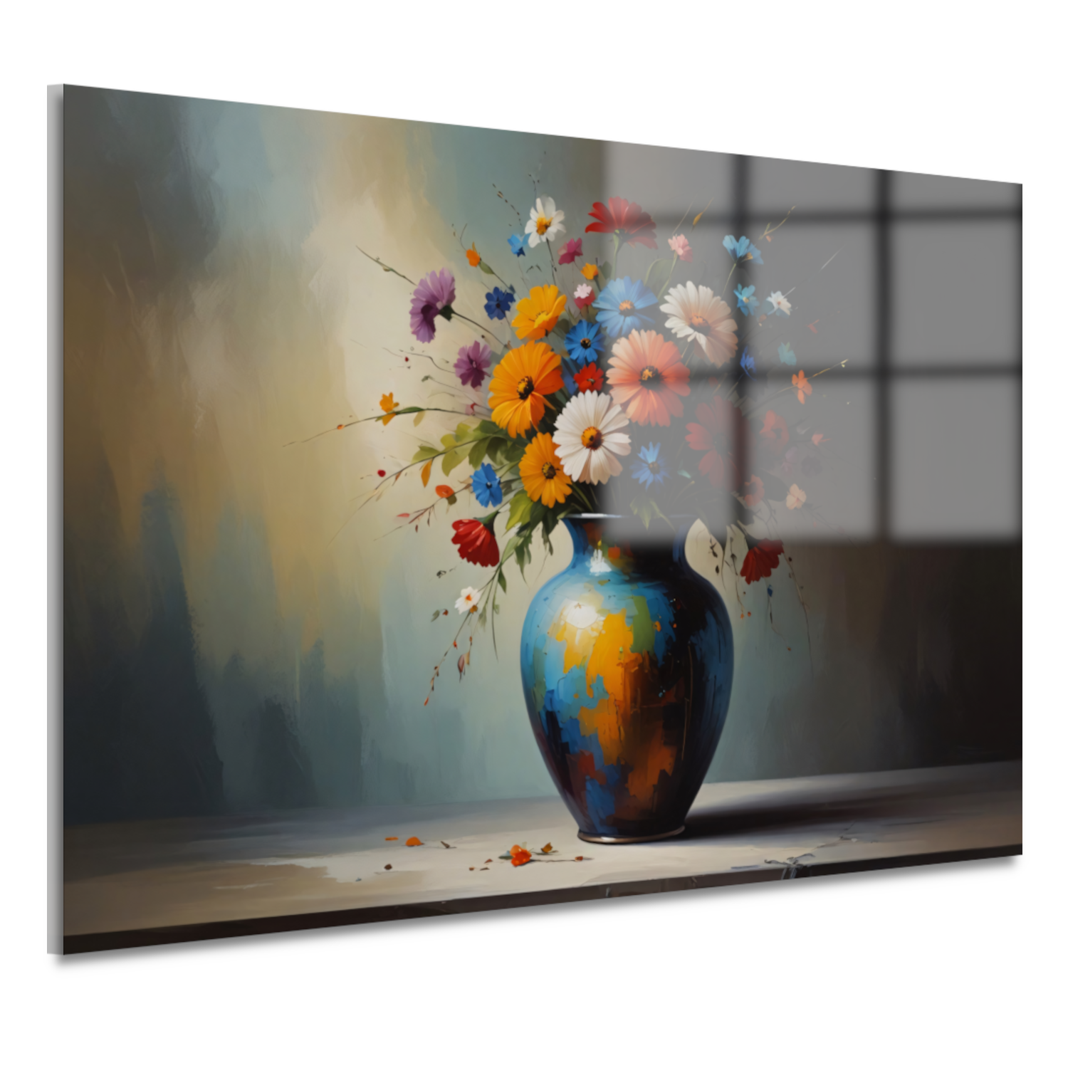 Bloeiende Bloemen in Blauwe Vaas Stilleven acrylglas