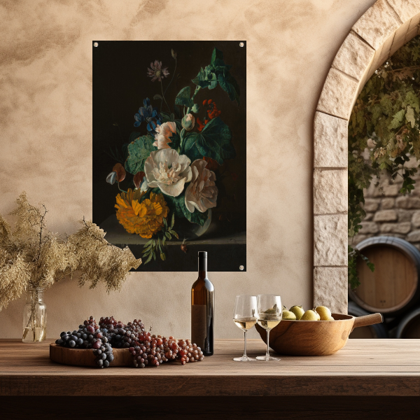 Bloemenstilleven met stokroos en goudsbloem - Jan van Huysum tuinposter
