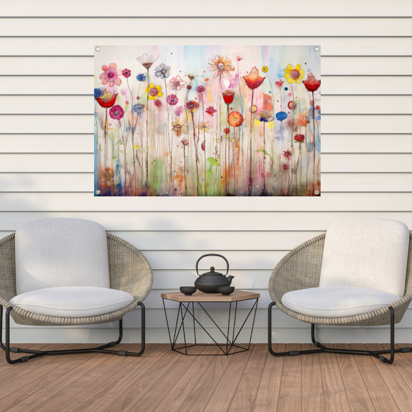 Bloemenveld in abstracte stijl tuinposter