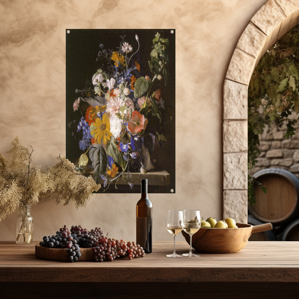 Bloemstilleven en slakken op een stenen richel - Jan van Huysum tuinposter