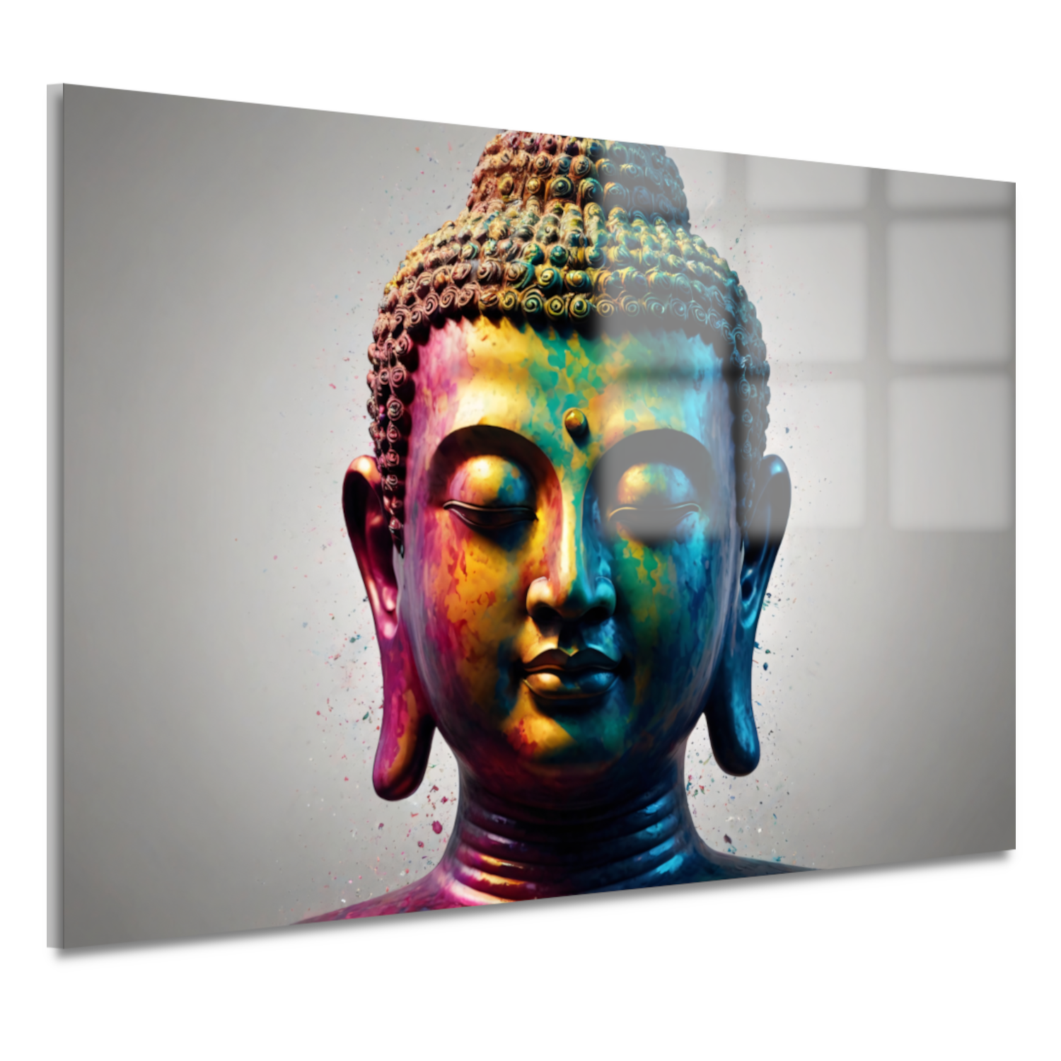 Boeddha Hoofd in Verrassende Kleurexplosie acrylglas