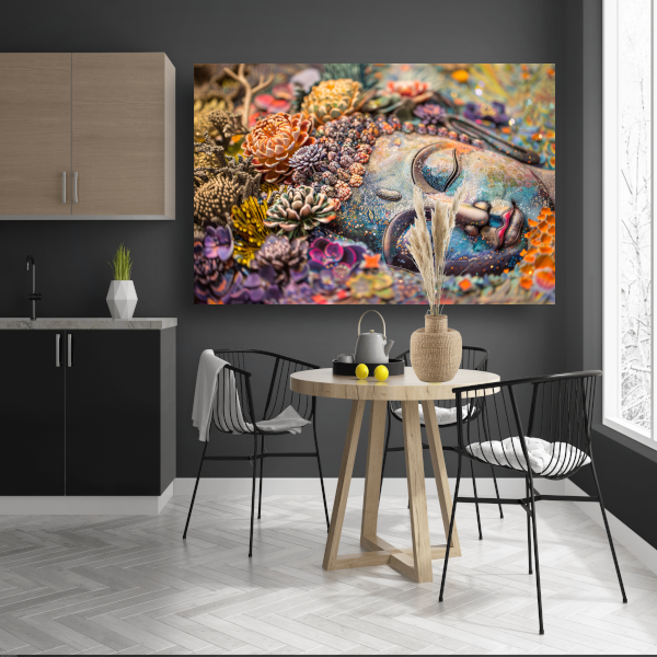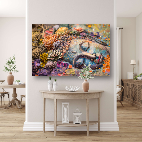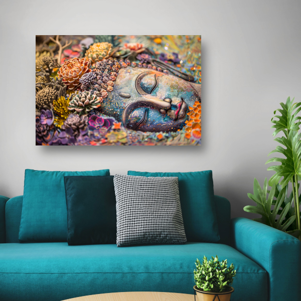 Boeddha in Bloemenpracht canvas met baklijst
