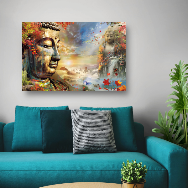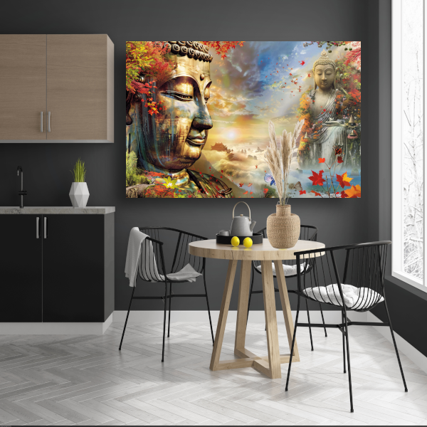 Of je nu op zoek bent naar een eyecatcher voor in de woonkamer, slaapkamer of kantoor, deze Boeddha in Herfstpracht met Vlinders op acrylaat zal zeker de aandacht trekken en een vredige sfeer creëren in elke ruimte. Bestel vandaag nog en geniet binnenkort van dit prachtige kunstwerk in jouw huis.