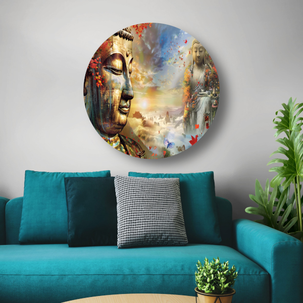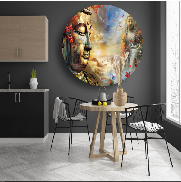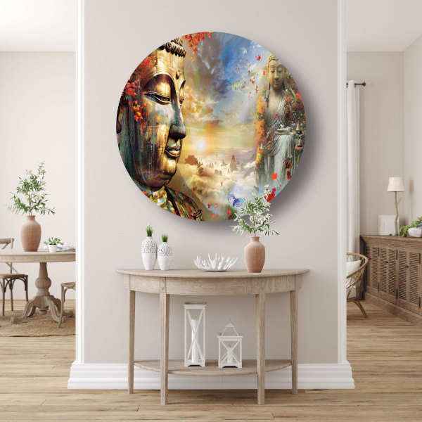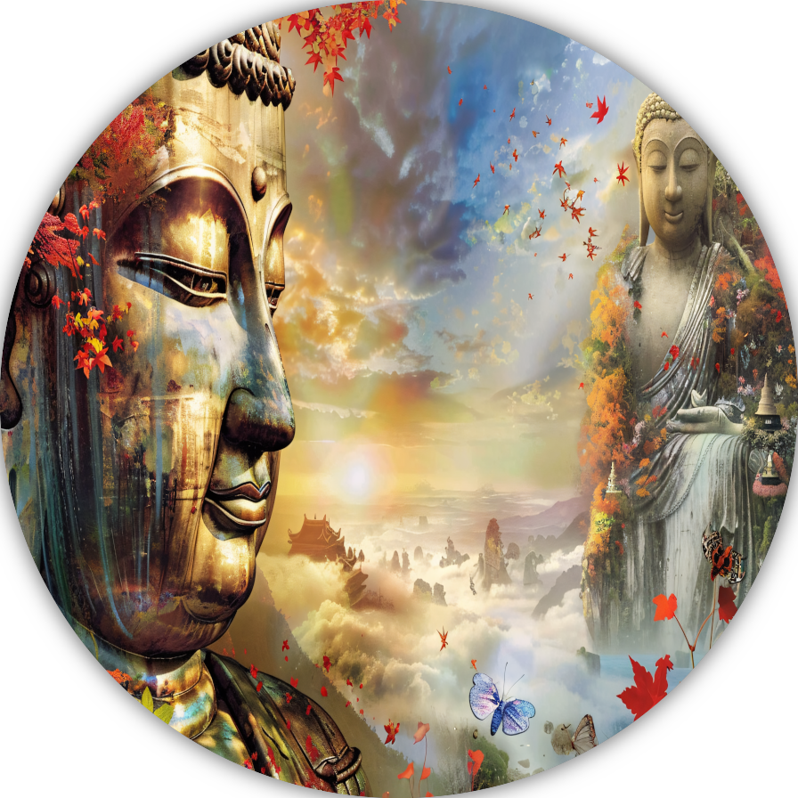 Boeddha in Herfstpracht met Vlinders aluminium muurcirkel