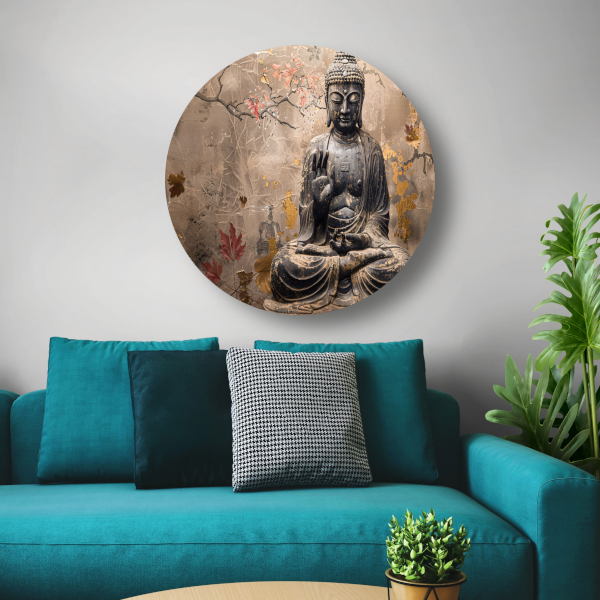 Boeddha in Herfstsereniteit: Sepia en Goud forex muurcirkel