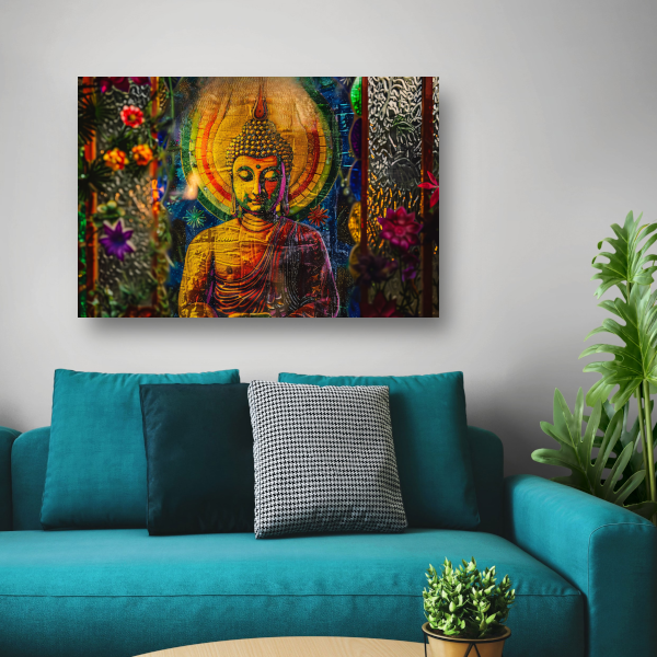 Boeddha in Kleurrijk Kosmisch Licht canvas